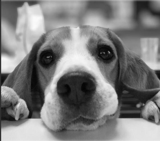 パンティングしているビーグル犬に手をあてた。そのコは私をみて、アイ