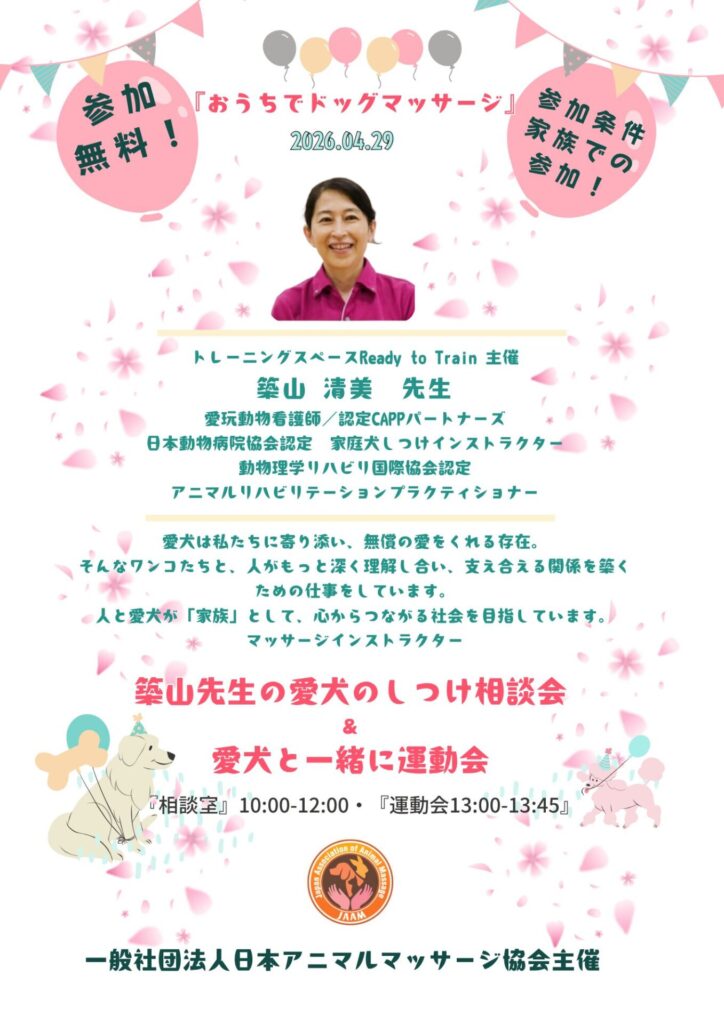 ホーム » 第2回自宅でできるドッグマッサージを学ぼう!w/ドッグマルシェ